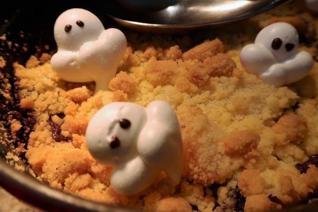 チョコや焼きメレンゲで作ったハロウィンキャラがかわいいな。