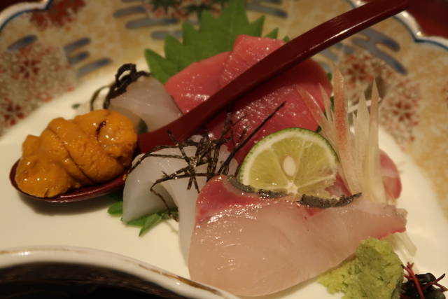 ウニ、ヒラメ、中トロ、やりイカ、シマアジ、炙りタイ。