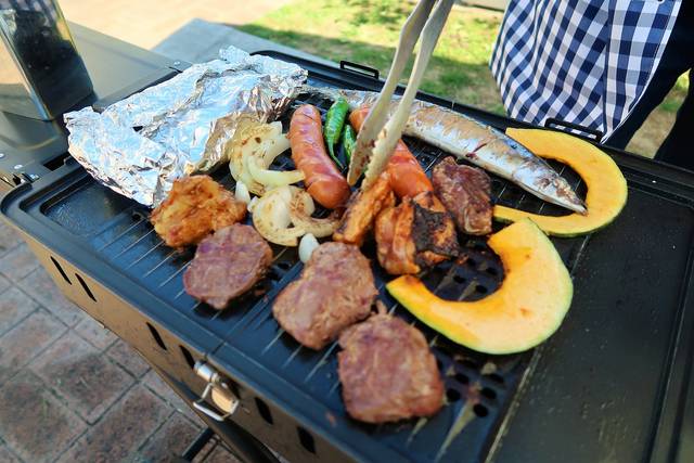 焼くのは自分たちで。カセットボンベのBBQコンロ。