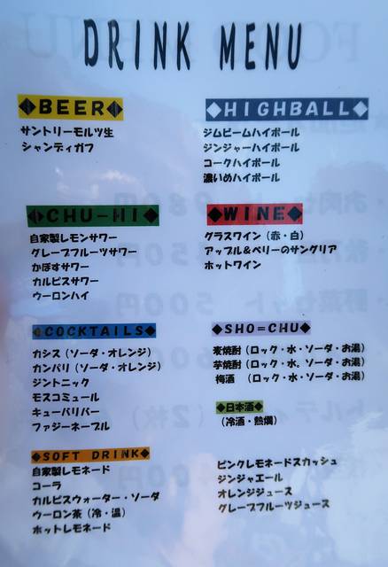 3時間フリードリンクプランは¥1500。