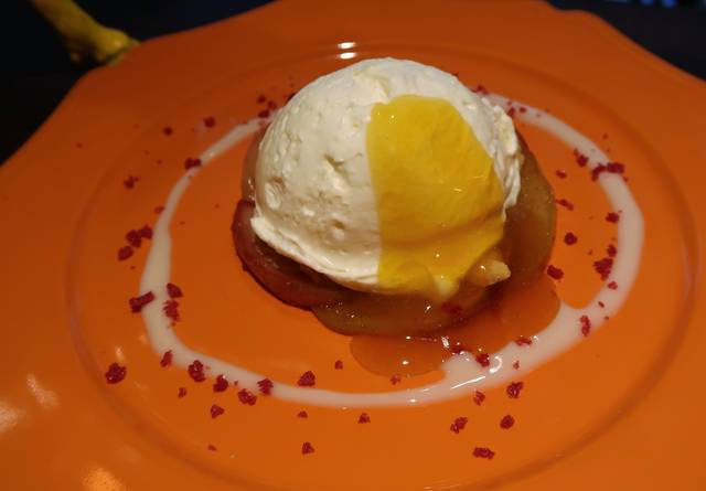 温かいベリーのフォンダンソースをかけて。ちょっぴり酸味。ふわふわ甘くてクリーミー。