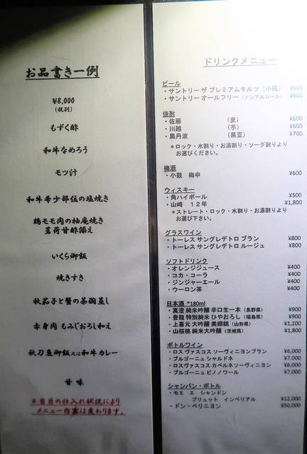 仕入れの都合やお客さんの趣向によって、メニューはマイナーチェンジ。