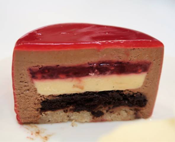 バニラの風味がしっかり、フランボワーズの甘酸っぱさと両方楽しめるチョコムース。
