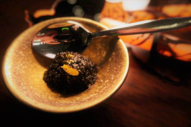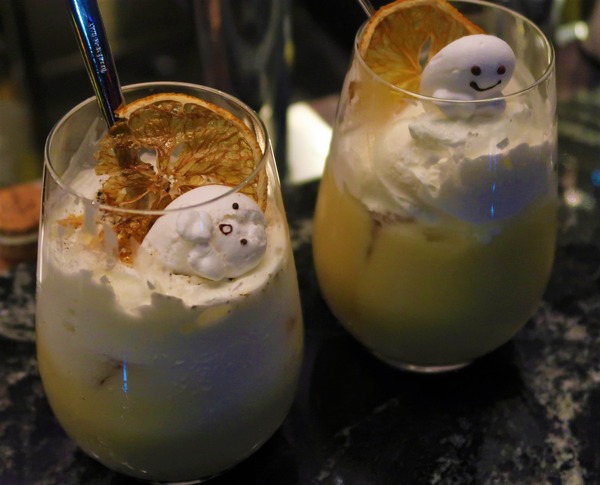 コーヒーゼリーみたいな真っ黒のお酒!おばけのメレンゲが浮いていました。