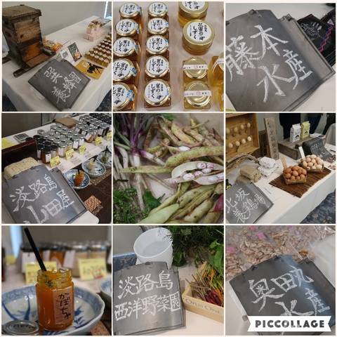 ハチミツ、のり、農薬・化学肥料を使わない野菜、干しエビ、手作りジャム、たまご、鶏糞の土など。