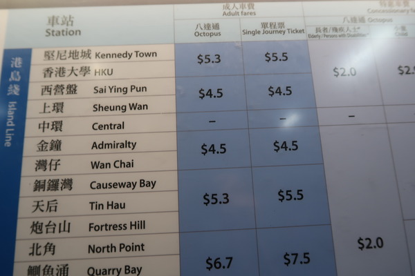 空港からMTRで香港市内へ。