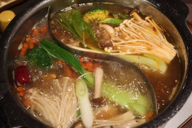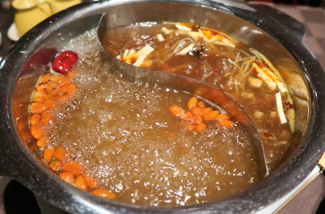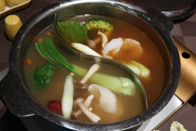 二色スープで交互に食べるからすすみます。