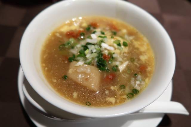 スープは酸辣湯(サンラータン)のスッパ辛い感じ。