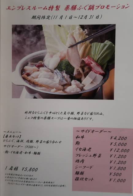 「薬膳ふぐ鍋」はランチでもディナーでも食べられます。
