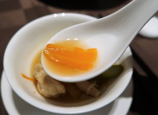 薬膳のスープをひとくち。