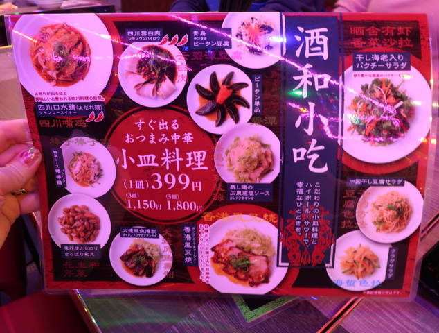 スピードメニューの小皿料理は一皿¥399ですが、3皿、5皿とまとめて頼むと割安になります。