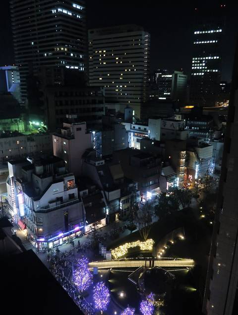 高層じゃないけど、ライトアップを見下ろすのはいい気持ち。