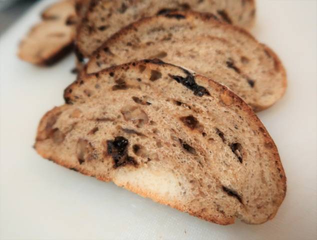 レーズンとナッツ入りのずっしりとしたパン。