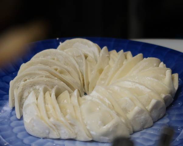 お~~、バリバリと揚げ焼きしたみたいな部分と、もっちりとした食感とがクセになる。