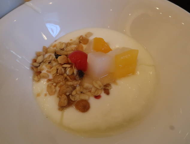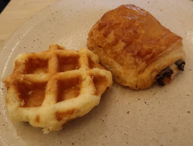 クロワッサンやワッフルもあってうれしいな。フルーツカクテルにヨーグルト。