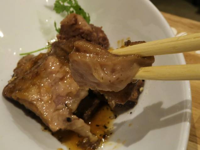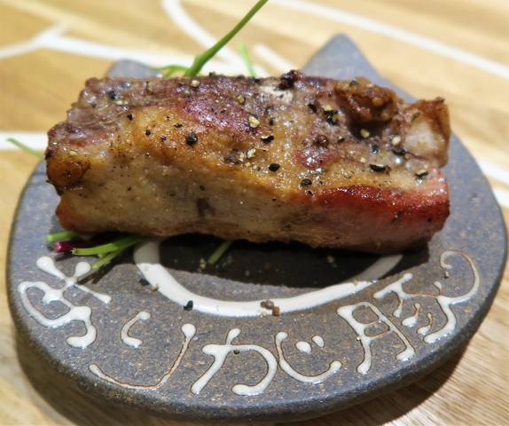 お肉の旨みとした味とで、何もつけずにそのまま食べるのが好みだけど、わさびもいいかも。