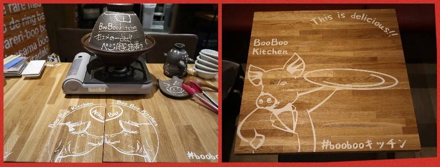 食器やテーブルにもイラストやメッセージが満載。お料理をフォトジェニックに配置できそうなテーブル(笑)
