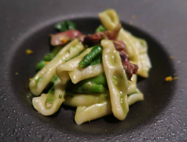 酒粕を練り込んだカヴァテッリ ホタルイカと菜の花のソース 柚子の香り ¥1700