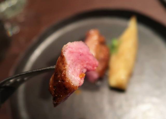 低温のオイルでゆっくり火を入れた鴨胸肉 オレンジのソース¥2500
