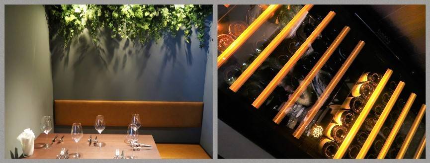 普通のテーブル席、奥まった、なんだか落ち着く席、その隣にセラー。
