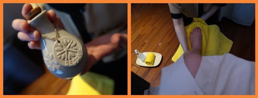 呼び鈴を鳴らすとセラピストさんが来られて、足を清めるところから施術が始まりました。