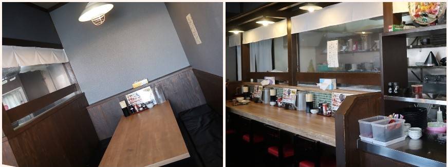 カウンター、仕切りのあるテーブル席。