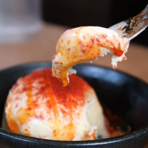 特製唐辛子とラー油のかかったバニラアイス☆
