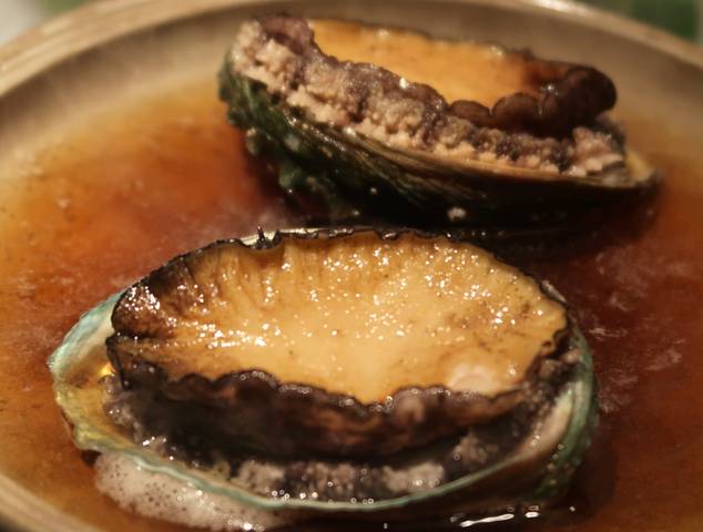 次は、活け鮑の紹興酒蒸し オイスターソース掛け