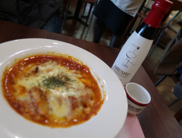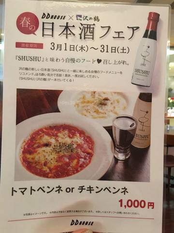 トマトペンネかチキンペンネから選べて、日本酒SHUSHUがついて1000円。