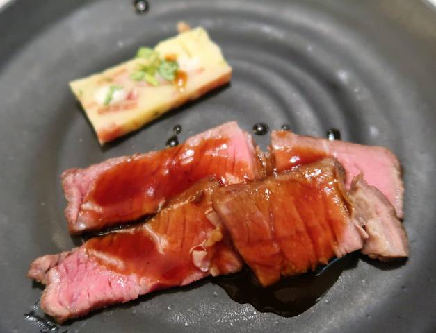 低温の和牛の脂でじっくりと調理し、やわらかくしっとりと仕上げるそう。