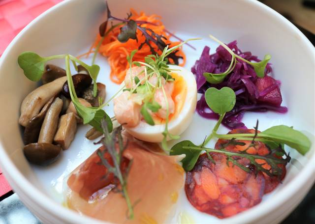 ボイルドエッグにシーフードがのったものや、オレンジ果汁でさわやかなキャロットラペなど。