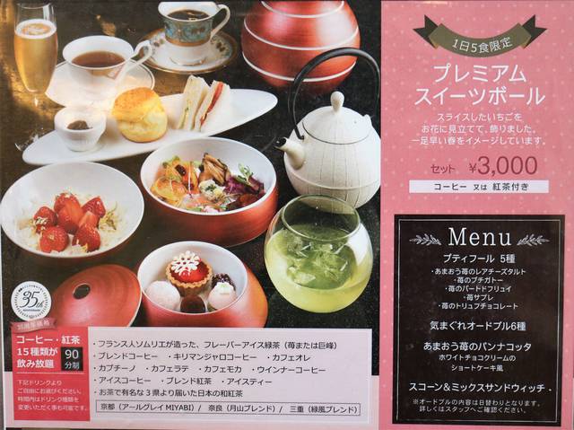 スイーツの内容が少し変わって、ドリンク15種類が90分間飲み放題の「プレミアムスイーツボール」セット¥3000というのもあるみたい。