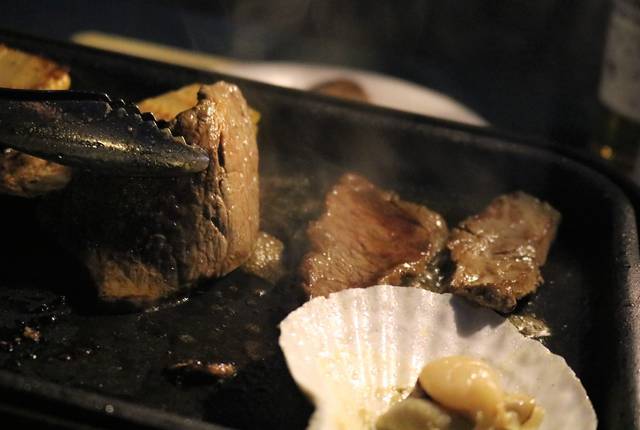 大阪城を目前にしたスペシャルシートは、スパークリングワインも含むフリードリンクで¥8000。90席。シェフが目の前で焼き上げてくれるサービスもついた特等席です。