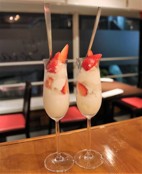 京丹後 野村牧場の牛乳を使ったミルクジェラートといちご。