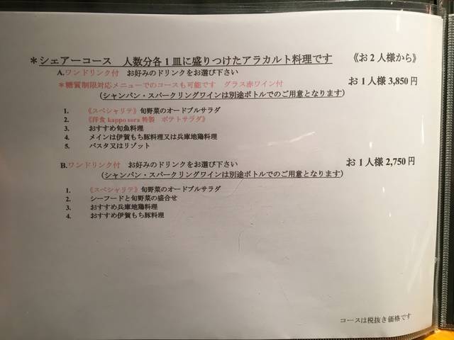 メニューは、単品、シェアして一人¥2750のコースもありますが、(まとめて最後にUP)