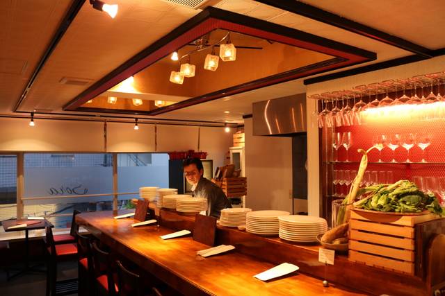 カウンターと奥にテーブル。シェフ一人で切り盛りされているお店です。