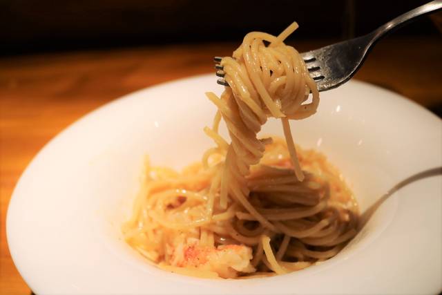 五味の最後は「旨味」で、「海老クリームのパスタ」。