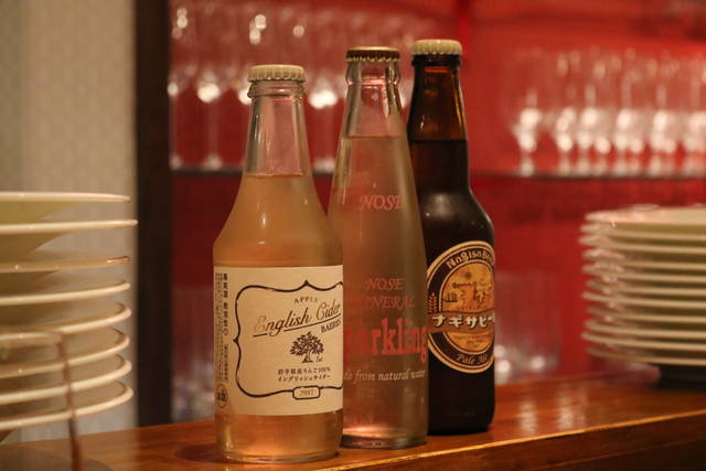 ファーストドリンクに、ジンジャーエール、能勢のサイダー、和歌山のナギサビールを選ぶこともできますよ。