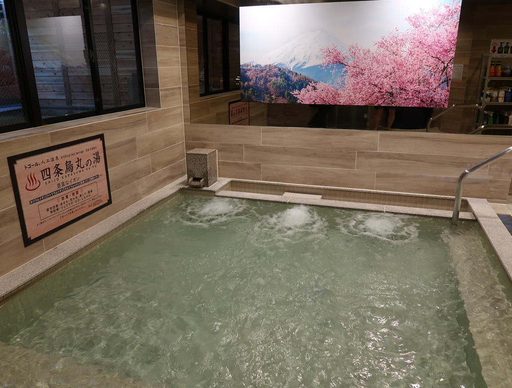 すぐそこが四条通だとは思えない~~。お湯の温度も快適で、足を延ばしてゆっくり入れて最高。