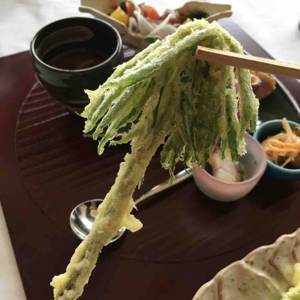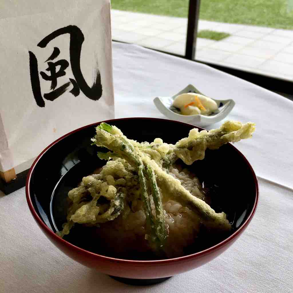 最後は山菜の天ぷら茶漬け。