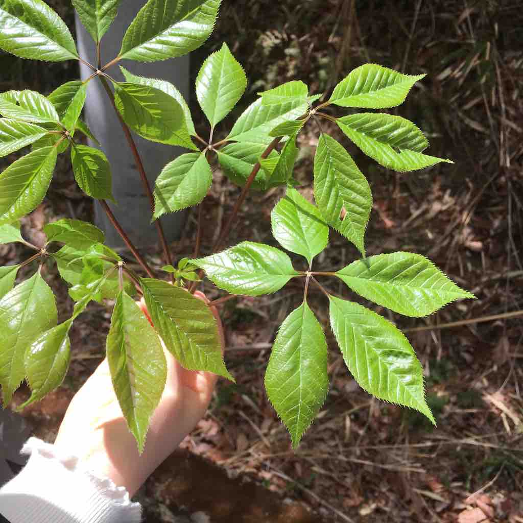 天ぷらに。 五加木ご飯にも。トゲがあるので垣根にするそう。