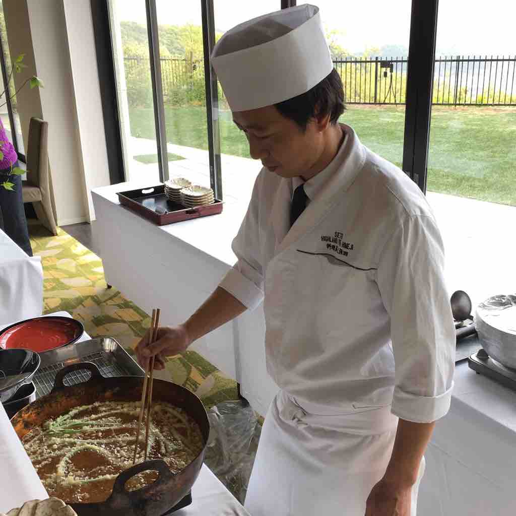 山菜の天ぷらはLIVE調理。