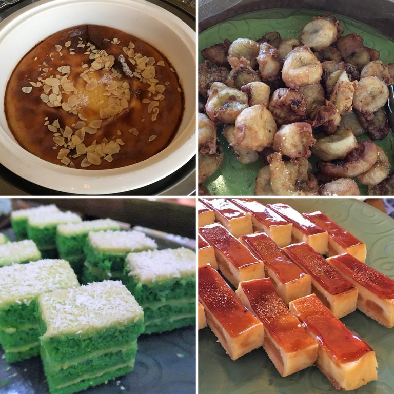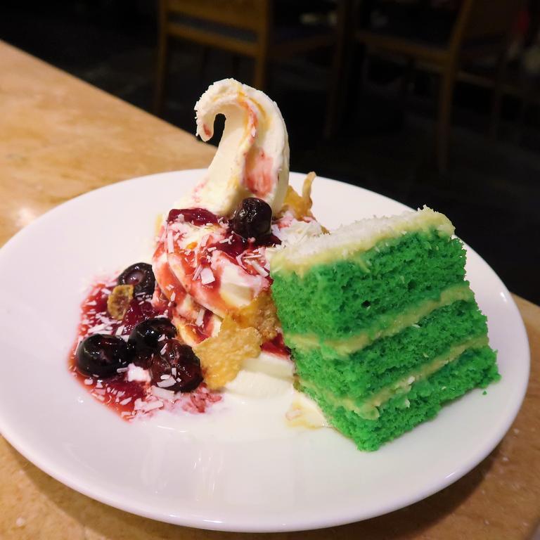 バスクリンみたいな色のケーキはパンダンココナッツケーキ。しっとりしていてミルキーでめっちゃ好きだった〜♪