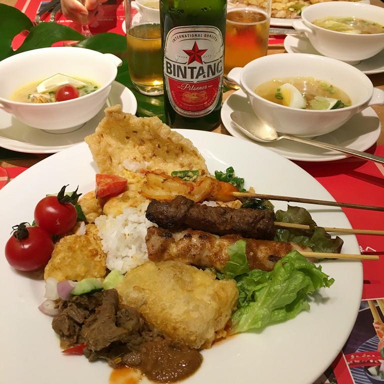 唐辛子、ガーリック、トマト、オニオンなどをすりつぶして作るサンバルというチリソース、ピーナッツソースなどがいろいろ用意されていたのでとすっかりバリにいる気分でいただきました。