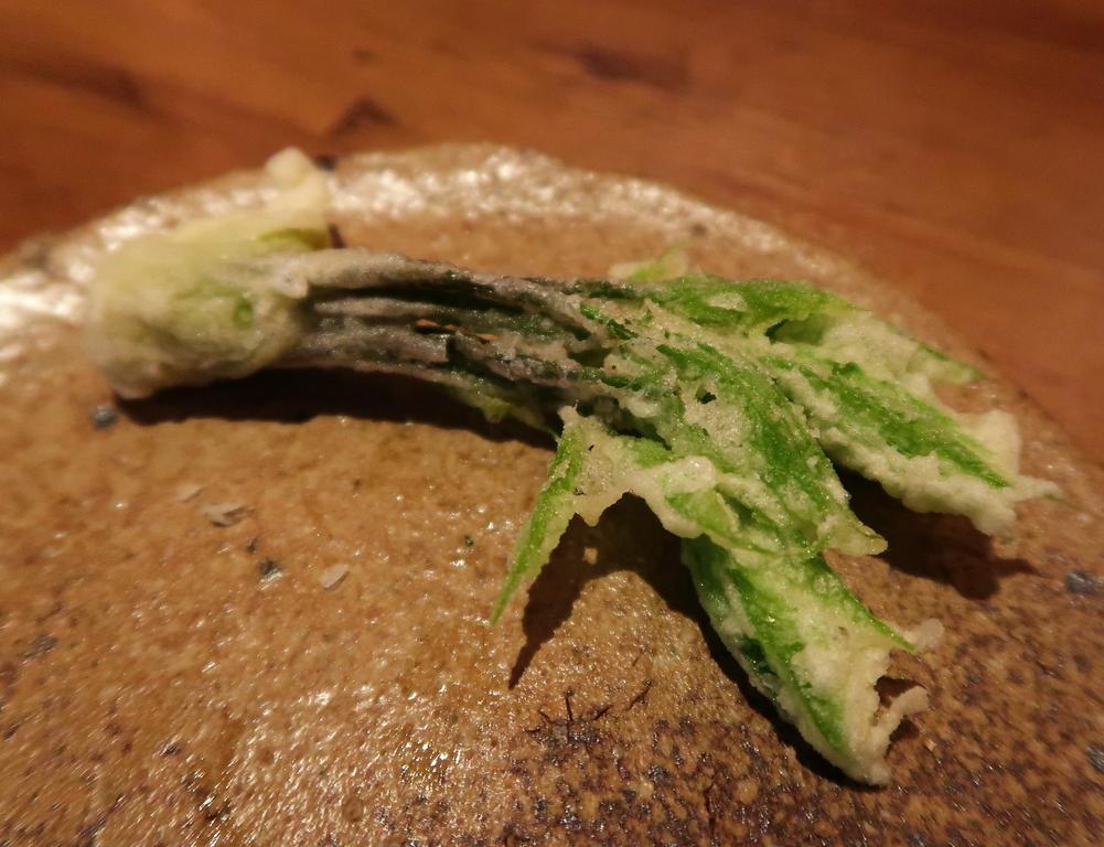 春菊みたいにほろ苦い風味が大人な山菜の天ぷら。根もとの方が香りが強い。