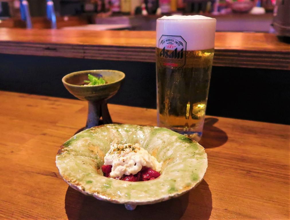 まずはビールとお付きだし。