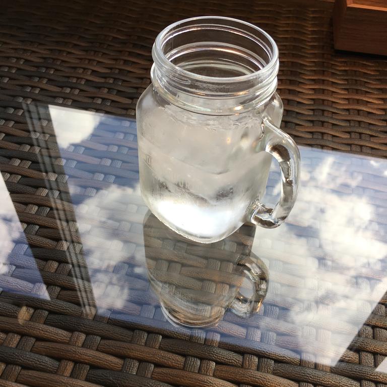 お水はジャグで。空と雲の映り込み~。HAPPYだな(≧▽≦)♪♪♪