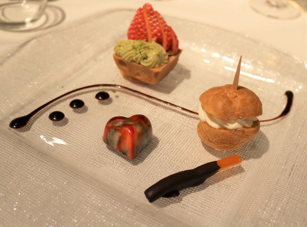 「萩乃露 福のしずく」には、「琵琶マス塩麹の低温調理 新玉ねぎのムース 桜のソース」