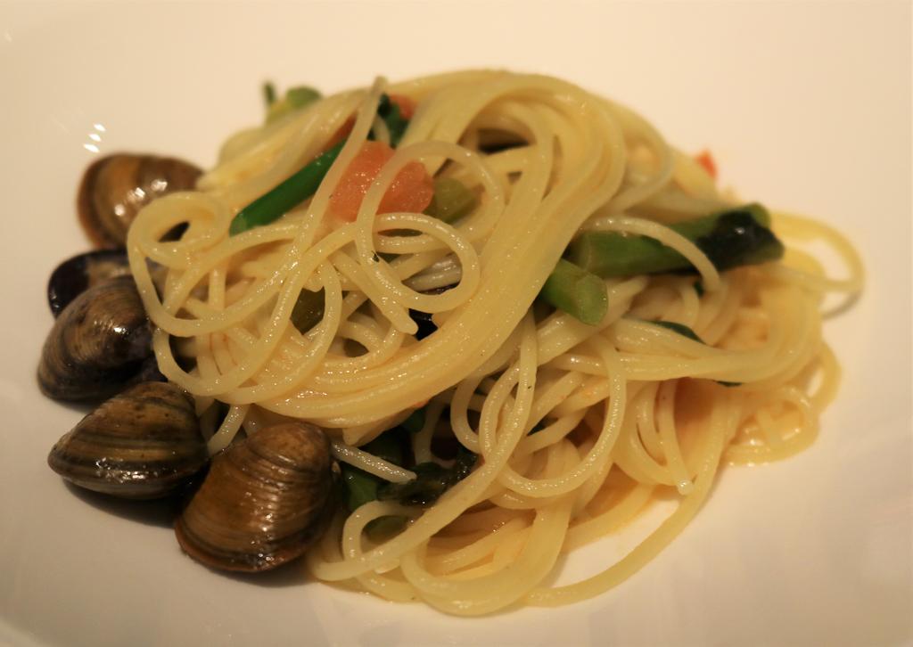 琵琶湖のシジミって大きいのね~。オイル系のパスタだけど和の味付けで日本酒にも合わせられるんですね。