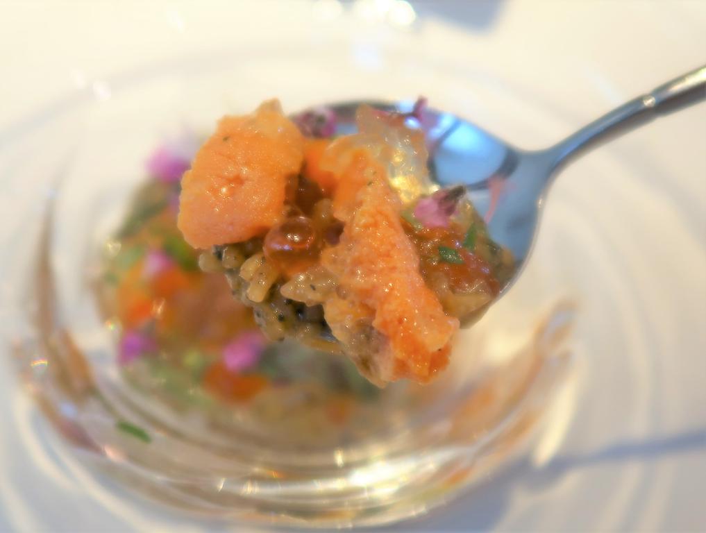 一皿目から、こんな細やかなニュアンスを楽しめるお料理が頂けるとは〜♪